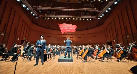 音樂會在交響樂《紅旗頌》的旋律中拉開帷幕。小號奏出的音符,把觀眾帶到開國大典上國旗冉冉升起那激動人心的時刻。弦樂奏出舒展、優(yōu)美的主題,向觀眾講述在紅旗引導(dǎo)下,無數(shù)英烈英勇奮戰(zhàn)、奮發(fā)向上的革命氣概和感人故事。簡短有力的圓號,豪邁而又激昂,象征著紅旗飄揚,帶領(lǐng)全國各族人民邁開巨人般的步伐走進新時代。蕩氣回腸的音樂深深感染了現(xiàn)場觀眾,座席上響起陣陣掌聲。