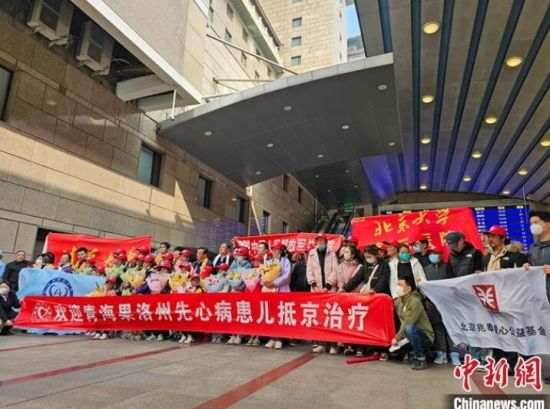 3月19日,來自青海省果洛藏族自治州的17名先天性心臟病患兒在家屬等人陪同下,乘坐火車抵達(dá)北京西站,將在北京的四家醫(yī)院接受免費(fèi)手術(shù)治療。圖為接站現(xiàn)場。中新社發(fā) “同心·共鑄中國心”組委會(huì)供圖