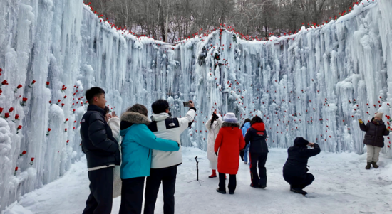 吉林蛟河“冬游”啟幕 游客越野穿越虎臉瀑布