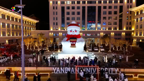 延邊大學(xué)正門西側(cè)則成為網(wǎng)紅打卡新地標(biāo)。12月31日17:18,超12米高的網(wǎng)紅大雪人正式亮相,雪人手持印有“延吉”字樣的咖啡杯,搭配紅帽紅圍巾的喜慶裝扮,成為城市跨年的標(biāo)志性景觀,也讓“延吉”城市標(biāo)識(shí)通過視覺符號(hào)深入人心。