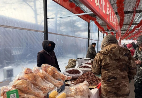 開市鑼響后,市民們摩肩接踵涌入集市,開啟熱鬧采購之旅。100余個(gè)展位整齊排列,商品琳瑯滿目、目不暇接:敦化本地有機(jī)大米、山野菜、笨榨豆油等農(nóng)副產(chǎn)品新鮮地道,朝鮮族辣白菜、米酒等特色美食香氣撲鼻;手工剪紙、木雕、民俗掛飾等傳統(tǒng)手工藝品精致別致,春聯(lián)、福字、紅燈籠等節(jié)慶飾品色彩鮮亮;還有堅(jiān)果干貨、糖果糕點(diǎn)、生鮮果蔬等各類年貨一應(yīng)俱全,滿足市民一站式采購需求,F(xiàn)場設(shè)置的寫春聯(lián)、送福字體驗(yàn)區(qū)前人頭攢動,大人小孩踴躍參與,歡聲笑語不斷,讓市民在采購年貨的同時(shí),沉浸式感受傳統(tǒng)文化的獨(dú)特魅力。
