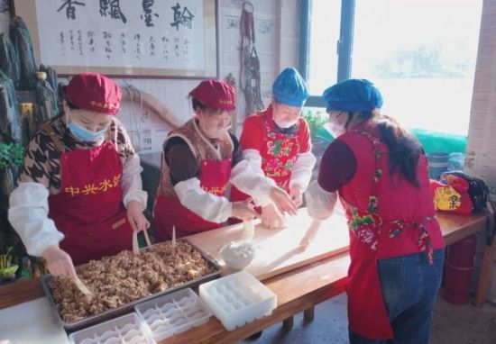 中興村魚肉水餃項(xiàng)目于2025年正式啟動,采用“村集體自主經(jīng)營”模式,依托村捕魚合作社保障野生魚原料穩(wěn)定供應(yīng)。同時(shí),村里還順勢開發(fā)出山野菜餡、酸菜餡水餃等衍生產(chǎn)品,憑借“手工制作、野生湖魚、鮮香醇厚”的獨(dú)特品質(zhì),成功贏得市場青睞。