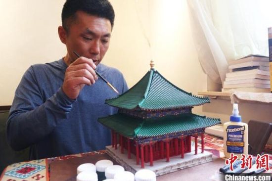 “根本停不下來,比小時(shí)候玩的積木更吸引我!闭f話時(shí),王雪松的眼睛一直沒有離開“五爺廟”。那是她的一件新玩具,她在用顏料彩繪房梁,這件新玩具已經(jīng)進(jìn)入上色階段,不日將完工。