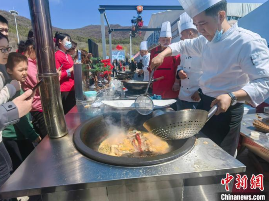 廚師現(xiàn)場(chǎng)制作開(kāi)江魚(yú)邀游客品嘗!∈橛/攝