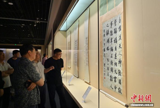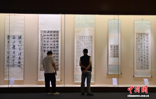 9月10日,參觀者在位于吉林省長(zhǎng)春市的吉林省博物院參觀董其昌的《戲鴻堂雜書(shū)冊(cè)》。近日,“吉林省博物院藏明清書(shū)法精品展”在長(zhǎng)春開(kāi)展,此次展覽遴選該院所藏明清書(shū)法精品五十余件,均為珍貴文物。展覽不僅系統(tǒng)梳理了明清兩代書(shū)法藝術(shù)的發(fā)展脈絡(luò),更是對(duì)中華優(yōu)秀傳統(tǒng)文化的傳承與弘揚(yáng)。中新社記者 張瑤 攝