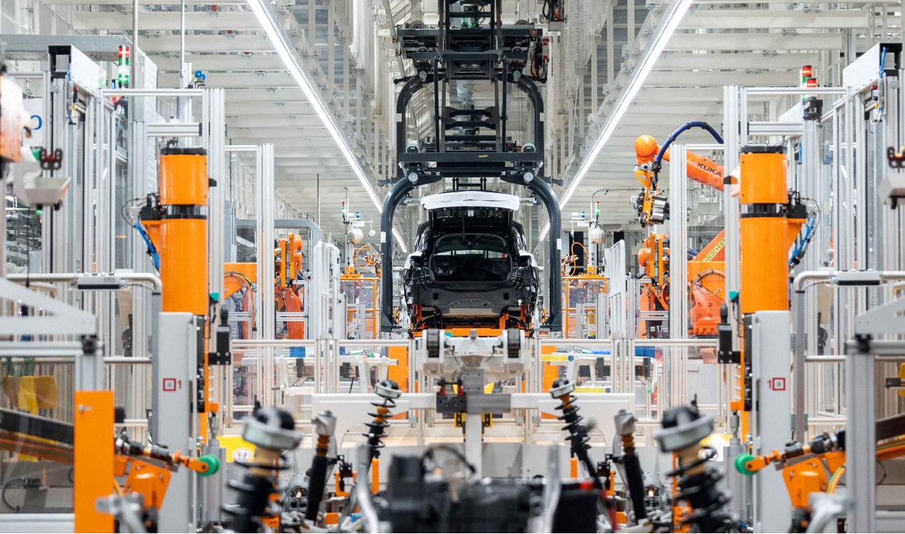 全域IT架構(gòu)的引入,使得所有設(shè)備、流程和數(shù)據(jù)在云端互聯(lián)互通。最直觀的體現(xiàn)是在焊裝車間,824臺機器人協(xié)同作業(yè),焊接自動化率達到100%,每輛車的4000多個焊點全部由機器人精準完成。總裝車間視覺檢測系統(tǒng)通過20臺高精度相機進行3D激光與2D光譜交叉掃描,將裝配質(zhì)量檢測精度提升至0.2毫米。