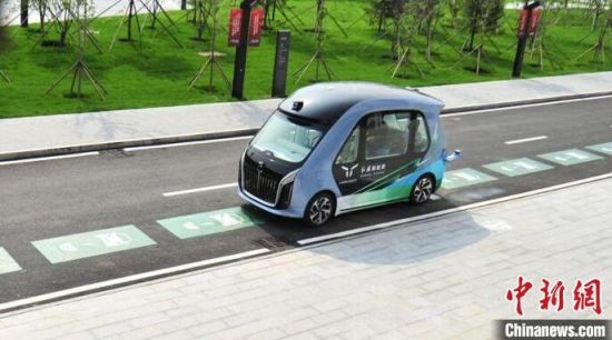 一輛新能源電動車在高功率動態(tài)無線充電道路系統(tǒng)上行駛。