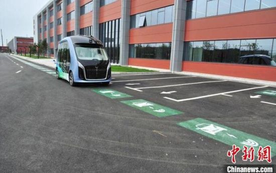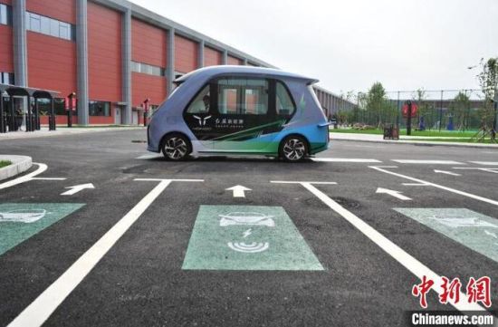 一輛新能源電動車駛過高功率動態(tài)無線充電道路系統(tǒng)的泊車位!