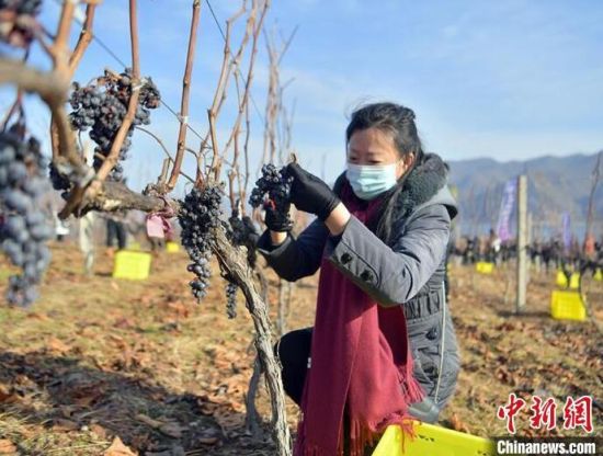 12月9日,吉林集安鴨綠江河谷,游客采摘冰葡萄。集安市所在的鴨綠江河谷與法國著名葡萄酒產(chǎn)地羅納河谷處于同一緯度,同屬世界葡萄酒黃金生產(chǎn)帶,當?shù)厮a(chǎn)的冰葡萄是釀制冰酒的主要原料。目前,鴨綠江河谷冰葡萄已經(jīng)進入最佳采摘時期。(完)