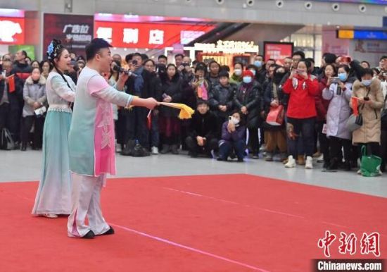 1月26日,在長春站候車大廳,長春站、沈陽鐵路公安局長春公安處等多個部門聯(lián)合為旅客帶來了系列精彩表演, 吸引大批過往旅客駐足觀看、參與。當(dāng)天,2024年春運(yùn)啟動。2024年春運(yùn)自1月26日開始至3月5日結(jié)束,為期40天。春運(yùn)期間,長春站預(yù)計發(fā)送旅客341萬人次,日均8.5萬人次。(完)