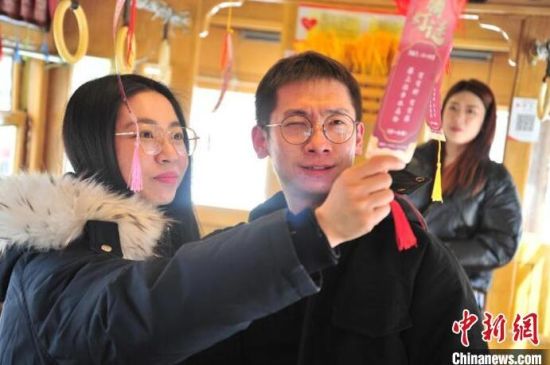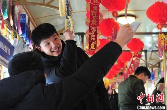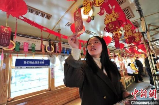 長春市民乘坐54路有軌電車文旅專列。市民在車廂內猜燈謎。市民在車廂內猜燈謎。市民在車廂內猜燈謎。市民在車廂內猜燈謎。