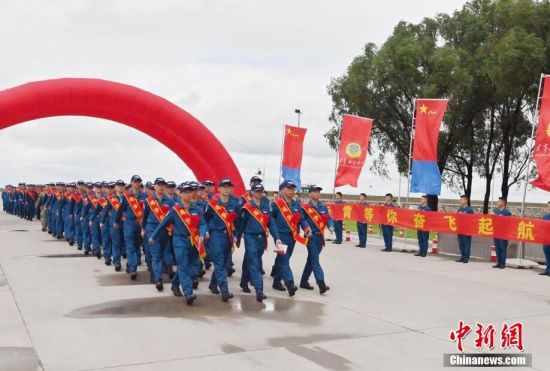 8月1日,吉林長春,新飛行學員正在列隊出場。8月1日到2日,中國空軍使用多架運-20,從全國多個登機點,集中運送新錄取的飛行學員到空軍航空大學報到。(中新社記者 張瑤 攝)