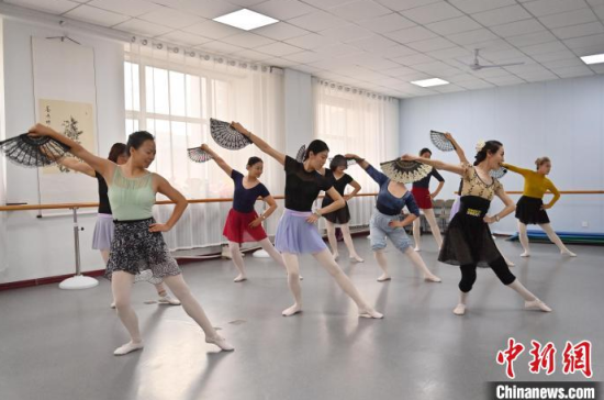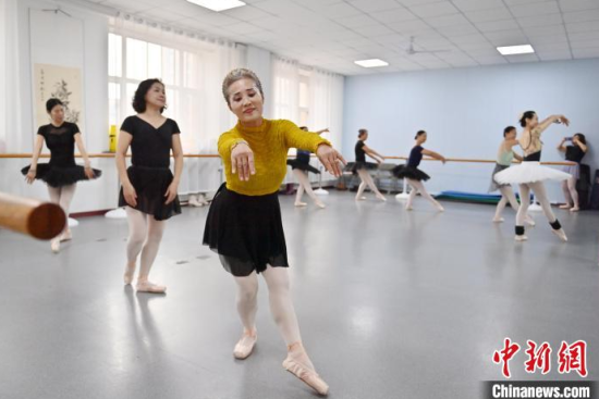 11月21日,在位于吉林長春的吉林省社區(qū)老年大學(xué),老年人在學(xué)習(xí)芭蕾舞。這些老年人年齡最大的已有70歲,她們每周聚在一起挑戰(zhàn)“足尖上的藝術(shù)”,演繹不老芳華。中新社記者 張瑤 攝