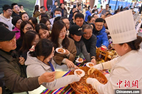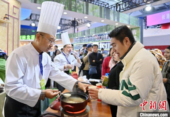 12月7日,吉林長春,市民在品嘗人參藥膳。當(dāng)天,2024長春國際醫(yī)藥健康產(chǎn)業(yè)博覽會開幕,在人參展區(qū),展示了百年野山參、人參藥膳及人參深加工產(chǎn)品。中新社記者 張瑤 攝