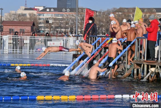 吉林長(zhǎng)春:中外冬泳愛(ài)好者冰湖暢游迎新年