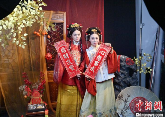 1月6日,吉林長春,市民在拍攝漢服寫真。店家介紹,農(nóng)歷蛇年春節(jié)將至,漢服寫真成了顧客新需求,店家特推出百梅迎春、金蛇賀歲、招財(cái)進(jìn)寶等主題,深受市民喜愛。中新社記者 張瑤 攝