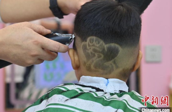 3月1日,農(nóng)歷二月初二,在吉林長春一家兒童理發(fā)店,家長紛紛帶著孩子來“剃龍頭”,理發(fā)店還為孩子們設(shè)計了各種有趣的發(fā)型。中新社記者 張瑤 攝