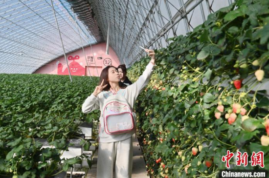 3月14日,游客在位于吉林省長(zhǎng)春市雙陽(yáng)區(qū)奢嶺街道的采摘園采摘草莓。當(dāng)天,第十一屆雙陽(yáng)奢嶺溫泉草莓旅游季拉開(kāi)帷幕,大棚內(nèi)的草莓也正迎來(lái)盛果期。據(jù)悉,奢嶺草莓園是吉林省內(nèi)規(guī)模最大的草莓種植、采摘基地。中新社記者 張瑤 攝