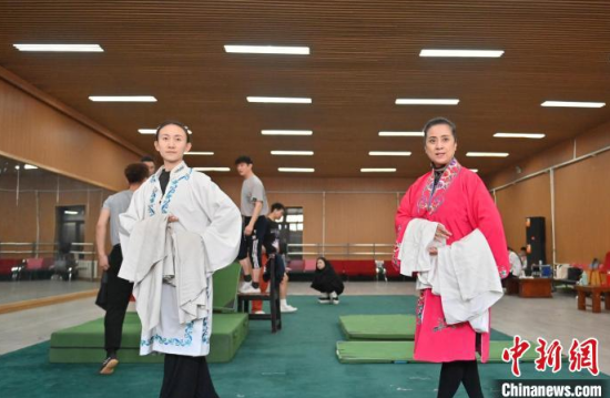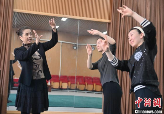 4月10日,在位于吉林省長(zhǎng)春市的吉林省吉?jiǎng)F(tuán),安靜芳(左)在為青年演員說戲。近期,中國(guó)文化和旅游部公布第六批國(guó)家級(jí)非物質(zhì)文化遺產(chǎn)代表性傳承人名單,吉?jiǎng)〈硇詡鞒腥税察o芳位列其中。入行超過四十年的她,曾塑造了樊梨花、鐵扇公主等眾多經(jīng)典角色。近年來,她退居幕后潛心授藝培育新人,以匠心守護(hù)這門年輕劇種的傳承發(fā)展。中新社記者 張瑤 攝