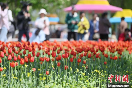 5月15日,在長春市長春公園內,近十萬株郁金香競相綻放,吸引了眾多游客前來觀賞。當天,“幸福匯·郁見美好”長春公園郁金香主題觀賞季系列活動正式啟幕,游客在賞花觀景中享受夏日清涼。中新社記者 張瑤 攝