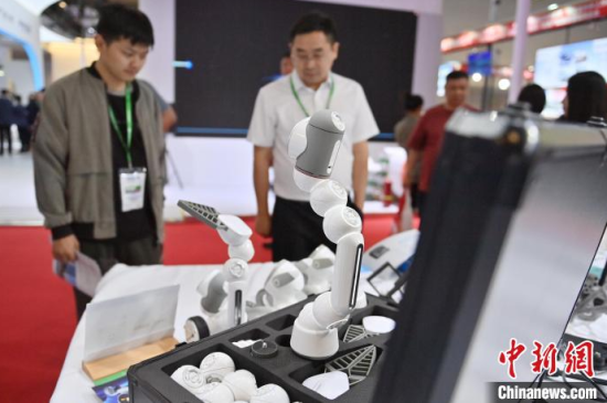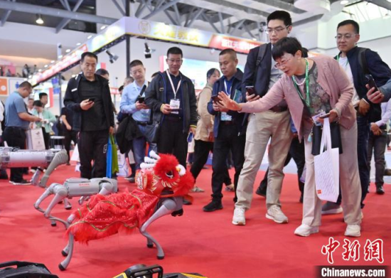 5月23日,第63屆高等教育博覽會(huì)(簡(jiǎn)稱“高博會(huì)”)在長(zhǎng)春開幕。本屆高博會(huì)由展覽展示與特色活動(dòng)兩部分組成。其中,展覽展示面積12萬平方米,參展院校和企業(yè)6000余家。圖為高博會(huì)展覽現(xiàn)場(chǎng),智能人形機(jī)器人吸引參觀者。中新社記者 張瑤 攝