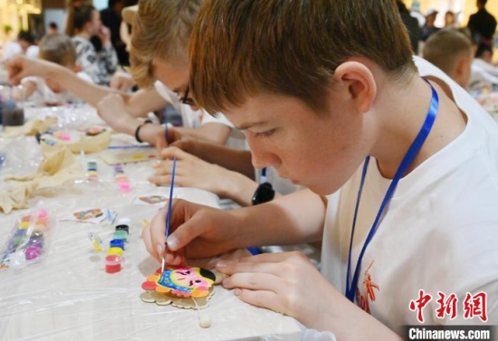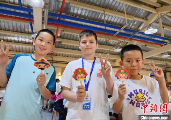 6月14日,吉林長春,俄羅斯青少年在展示京劇臉譜。當(dāng)天,“感知吉林·青春同行”2025中俄青少年文化交流系列活動在長春啟動。近 200 名中俄青少年參與京劇臉譜繪畫、制作魚皮畫等活動,感受中國文化科技魅力。中新社記者 張瑤 攝
