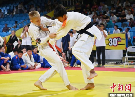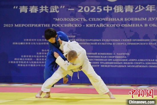 6月15日,“青春共武·中俄青少年武術交流活動” 在長春市體育館拉開帷幕。賽場上,來自俄羅斯柔術協(xié)會的140 名成員與長春市業(yè)余體育運動學校的 100 名學生輪番登臺,展開激烈競技。圖為俄羅斯青少年進行柔術比賽。中新社記者 張瑤 攝
