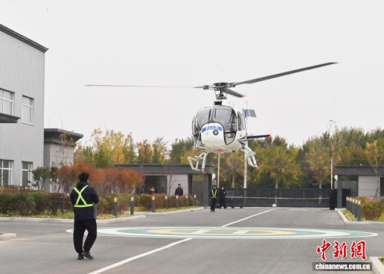 10月15日,吉林長春,急救人員在進行直升機航空緊急醫(yī)學救援演練。當天,中國國家緊急醫(yī)學救援基地(吉林)立體轉運中心移動醫(yī)院正式交付。該移動醫(yī)院由吉林大學中日聯(lián)誼醫(yī)院承建,配備通信指揮車、移動CT車、手術車等14類15臺應急車輛及43組帳篷,設200張床位,日均接診能力達800-1000人次。中新社記者 張瑤 攝