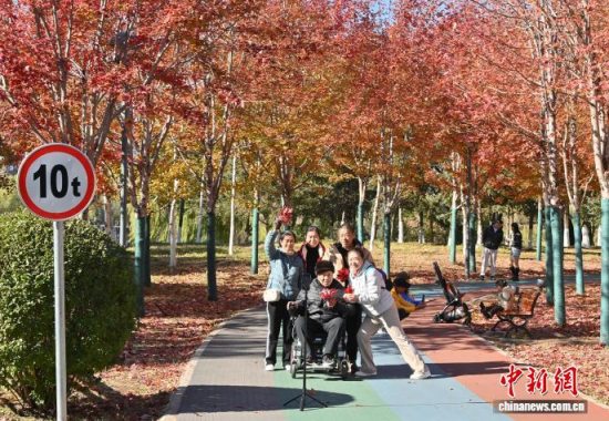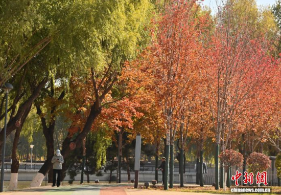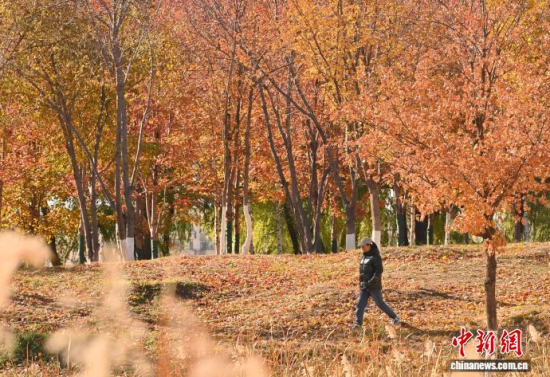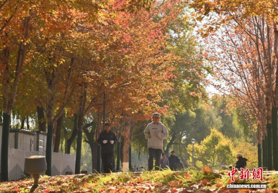 10月30日,吉林長春秋景怡人,市民踏葉賞秋,享受秋日美好時光。 中新社記者 張瑤 攝