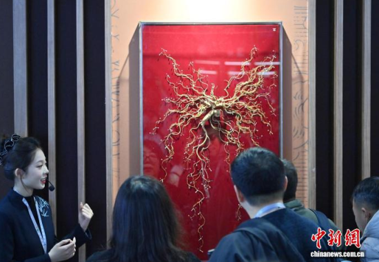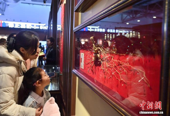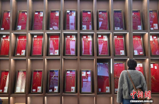 12月7日,吉林長春,參觀者在參觀人參。當(dāng)日,2025長春國際醫(yī)藥健康產(chǎn)業(yè)博覽會開幕,具有當(dāng)?shù)靥厣那暌吧絽、人參?biāo)本在人參展區(qū)展出,吸引了參觀者的目光。中新社記者 張瑤 攝